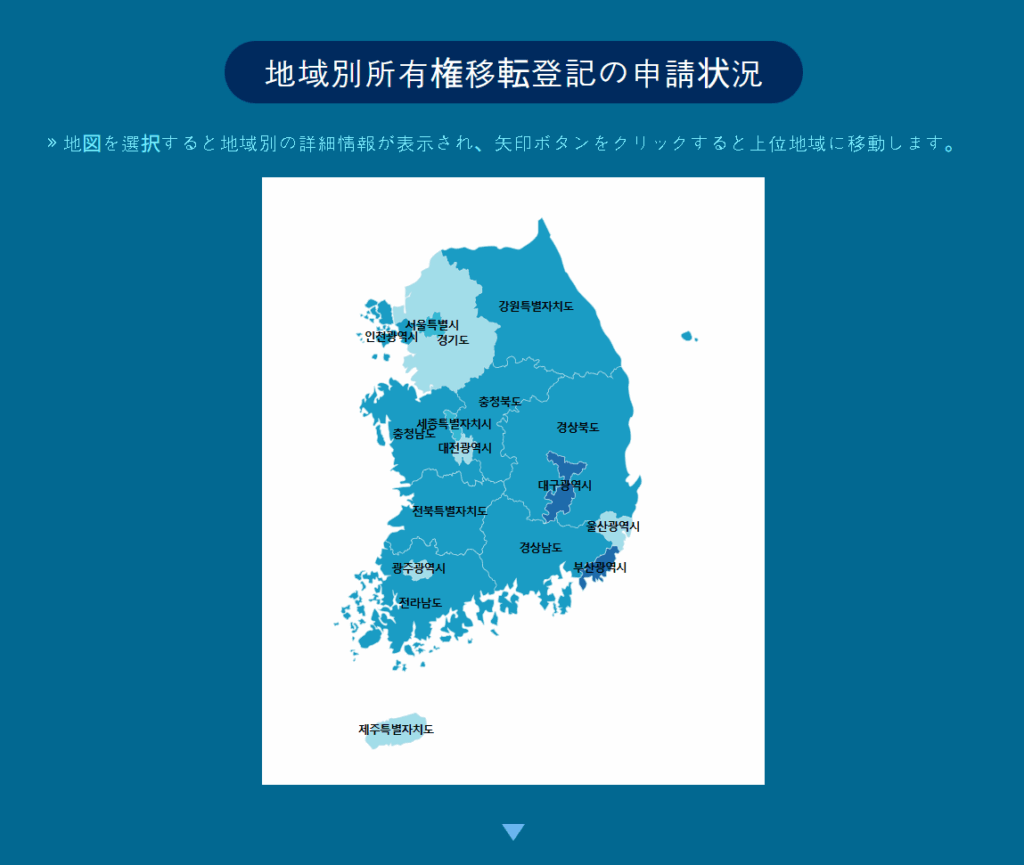 これは単なる統計サイトではありません。韓国の登記所(裁判所管轄)に蓄積された膨大な法的データを、一般市民が理解できる「インフォグラフィック」としてリアルタイムに近い形で開放しているのです。