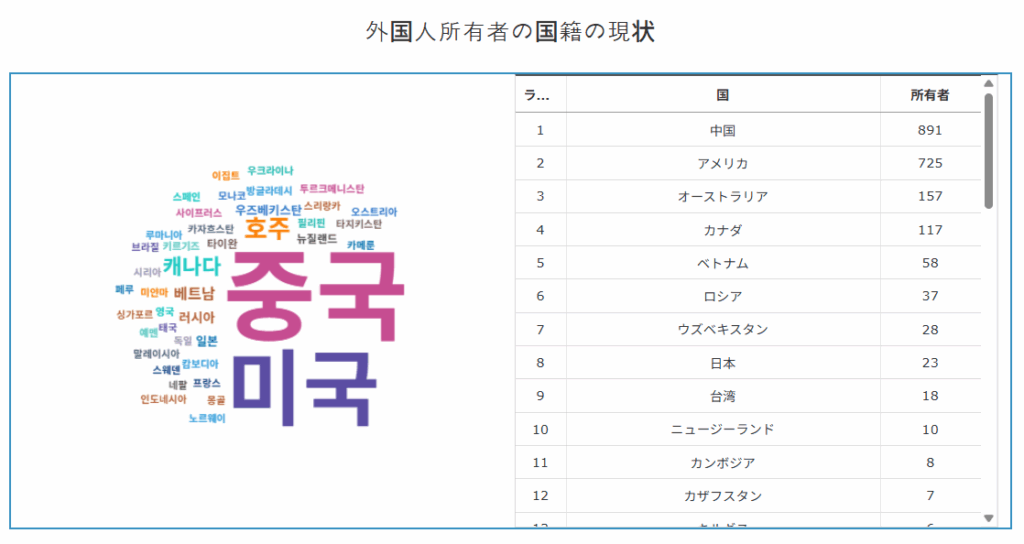 前述の通り、日本の登記簿には「国籍」が含まれていません。2024年4月から外国人の土地所有者についてはローマ字表記の義務化がされましたが、名前だけでは国籍を判断することはできません。また、外国法人についてはその対象外とされており、ある土地が外国資本に買われたかどうかを正確に追跡する術は、極めて限定的です。